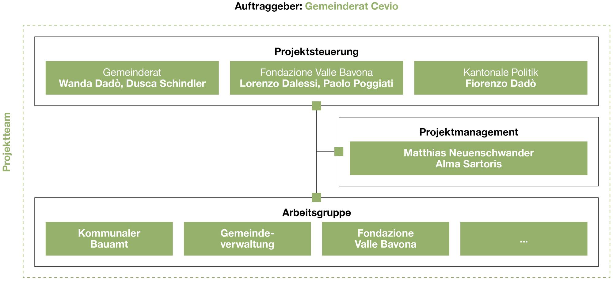 Im Dezember 2024 hat die Gemeinde Cevio eine Governance eingesetzt, deren Steuerung aus zwei Vertretern der Gemeinde Cevio, zwei Vertretern der Stiftung Valle Bavona und einem Vertreter der kantonalen Politik besteht.